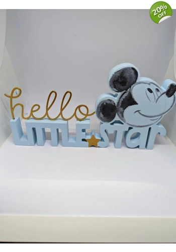 Beautiful Disney Mickey Mouse mantal plaque in blue look beautiful in any little boys room or baby nursery , the hello is in gold and the star then it says little star
