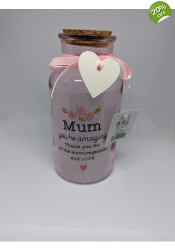 Pink Glitter light up Mum jar